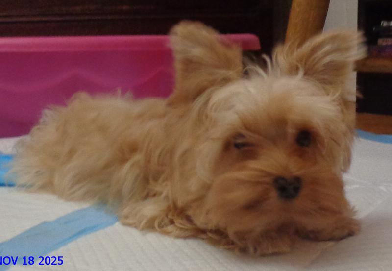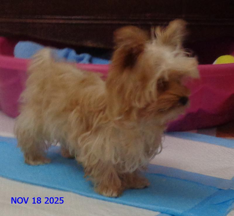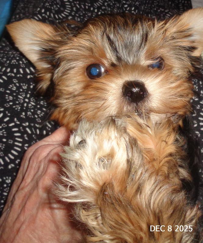 The little lady to the left was born 11/30/2021 and will be ready for adoption in a week to 10 days... She is staying with us a bit longer because she is so tiny.... she weighs 1 lb. 6.8 ounces today and she is 10 weeks old today 2/8/22, she has been vet checked and had her first vaccine....