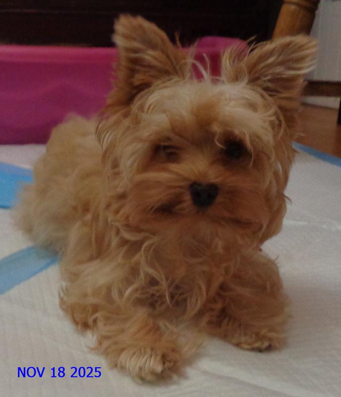 on 11/23/25 and will be platinum blonde... white like the color on her forehead. She weighs 3 lbs 13.1 oz as of today 11/19/25. She is full of energy and has a beautiful coat.