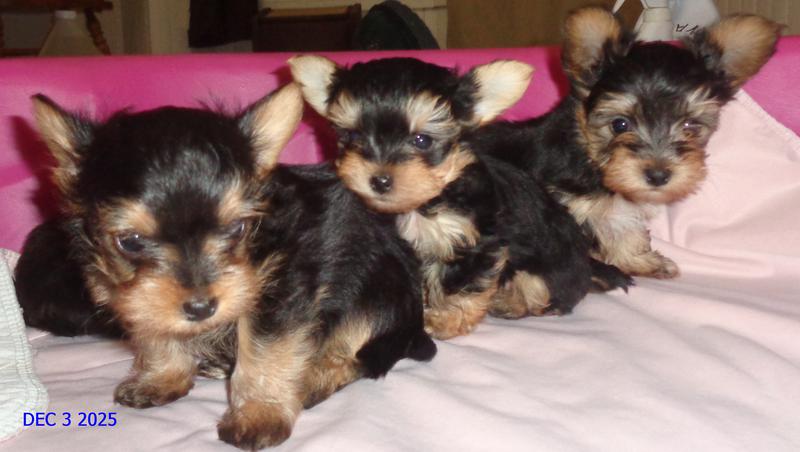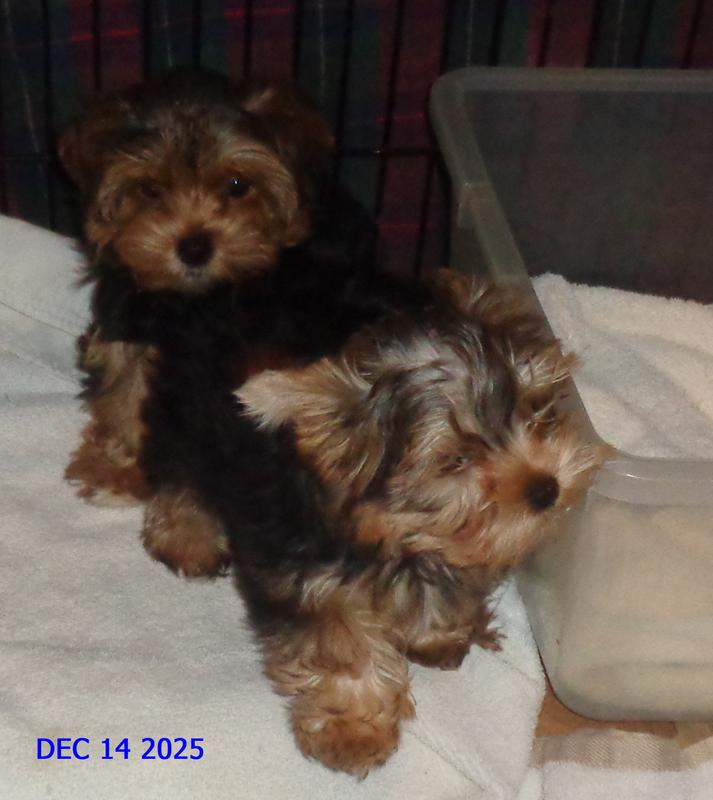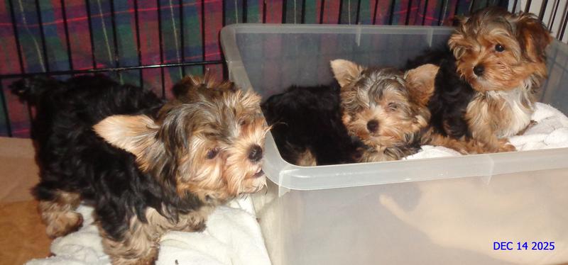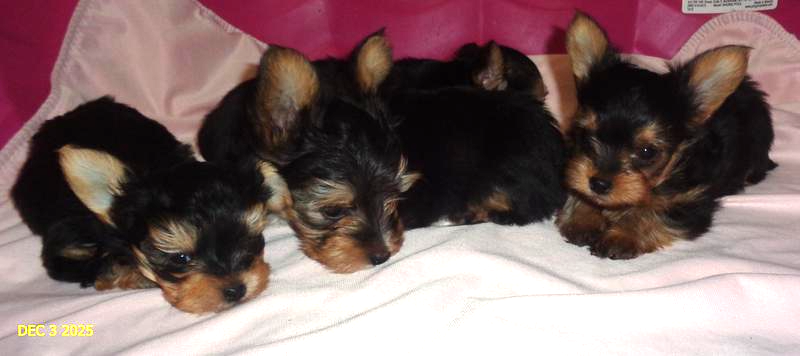 The pics below are from a litter that was born 10/17/25.... there are three males and one female. They will be 9 weeks this Friday, 12/19/25, have been vet checked, vaccines & worming are up to date. I believe the males will remain black/tan... the female has a very light face so she may be blue/tan as an adult. You never know.... as I always say they are like a box of chocolates... you never know what color you may get.